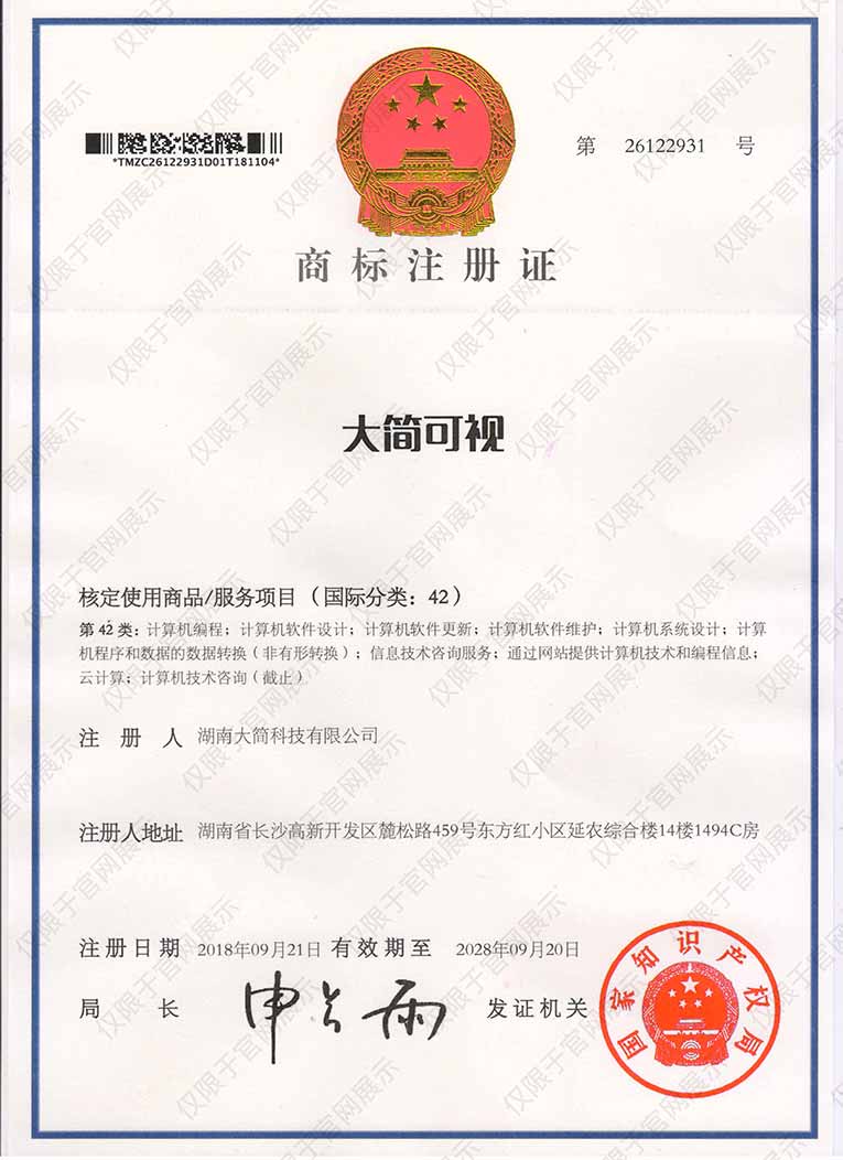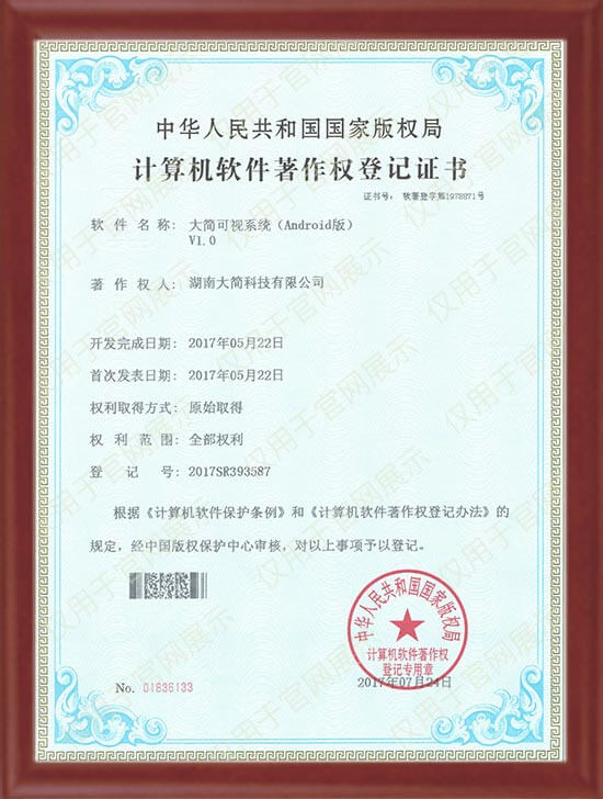 公司主要從事互聯網行業的產品創新與運營,擁有大簡智慧事件、大簡可視、花田喜視等多款創新性產品。其中明星產品“大簡可視”是一個專業提供可視化服務的平臺,可幫助政府部門以及企事業單位實現政(企事)務大數據治理和數據的可視化展示。除此之外,還可滿足企業在品牌宣傳、業務數據掌控、管理創新方面的需求。用戶可以通過簡單的操作、方便的展示授權,根據自身需求快速高效的實現業務數據的可視化和品牌宣傳。系統兼容手機、Pad、智能電視、電子白板多種屏設備。